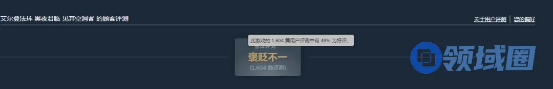 FromSoftware旗下大作《艾尔登法环:黑夜君临》的首个付费DLC“见弃空洞者”已正式登陆Xbox、PlayStation及PC平台。尽管游戏本体近期Steam同时在线玩家数峰值达133,355人,但该DLC目前在Steam上的评价仅为“褒贬不一”,在总计1604篇用户评测中,仅有49%给出推荐,玩家普遍认为其新增内容缺乏诚意。