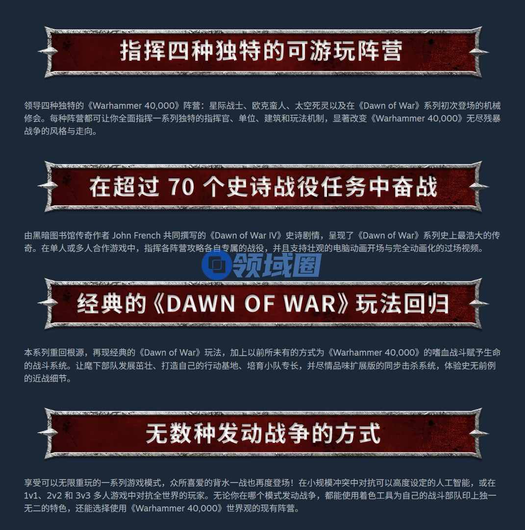 Black Library作家John French参与了游戏超过70个任务的战役剧本创作,战役将支持单人和合作两种游戏模式。