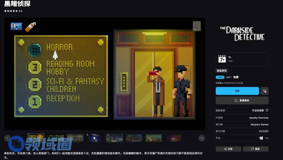 《黑暗侦探》,原价47元,现可免费领取,2021年12月发售