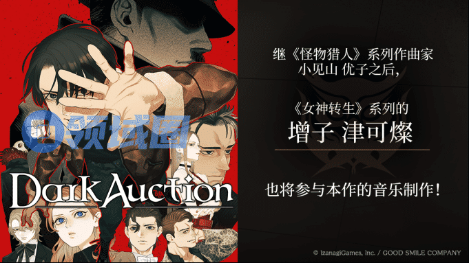 IzanagiGames, Inc.(总部位于东京都涩谷区,制作人兼CEO:梅田慎介)与Good Smile Company, Inc.(总部位于东京都千代田区,代表董事社长:岩佐严太郎)宣布,除了《怪物猎人》系列作曲家小见山优子团队之外,《女神转生》系列作曲家增子津可燦也将参与《Dark Auction》的音乐制作,为本作带来更加坚实的音乐阵容。