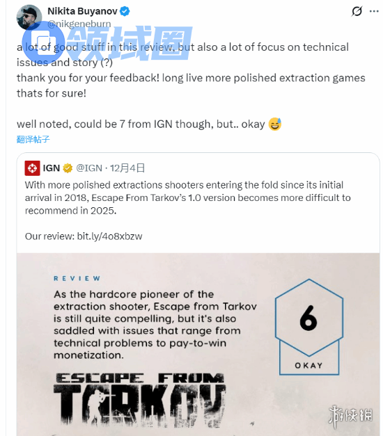 《逃离塔科夫》总监Nikita Buyanov对IGN的6分评价作出了回应,他表示: