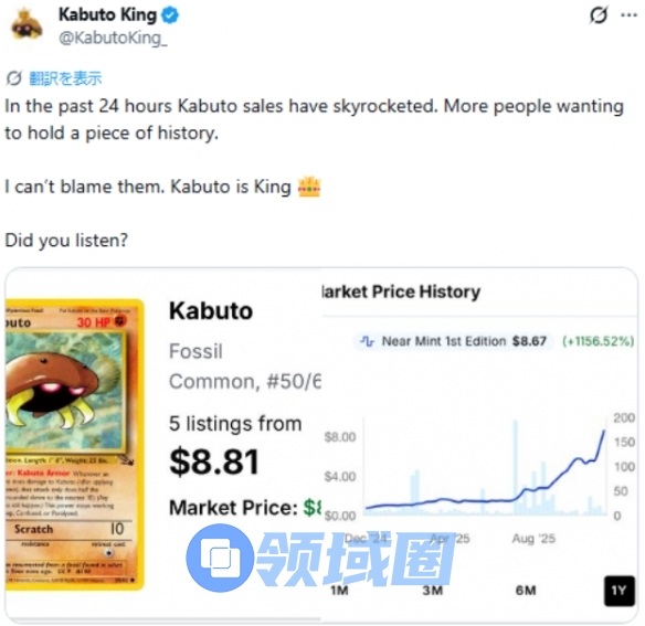这位被网友称为“化石盔之王”的玩家Kabuto King(@KabutoKing_),专注于收藏海外版早期卡包中的“化石盔”卡牌,并且只收录印有“1st Edition”标识的初版卡。他定期在X平台上更新收藏数量,相关动态被娱乐资讯账号转发后,迅速走红。