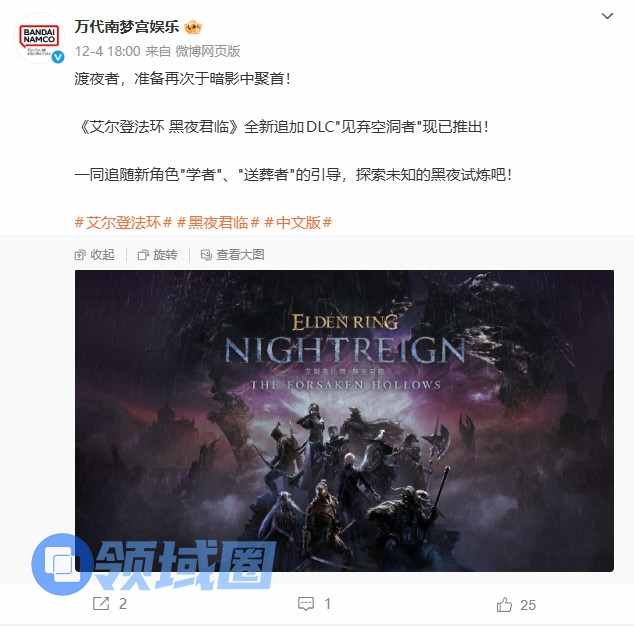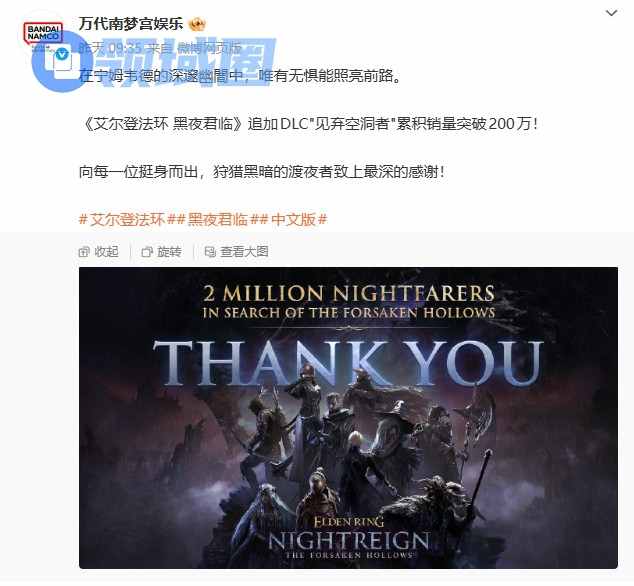 昨日,万代官博发布消息,宣布《艾尔登法环:黑夜君临》追加DLC“见弃空洞者”,上线三天累积销量突破200万,这款DLC标志着该系列又一成功。而根据最新的销量数据,《艾尔登法环:黑夜君临》本体的销量已超过500万份。