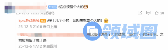 这一安排迅速在玩家社群中引发猜测。有玩家在官方消息下留言调侃:“这次必须得来个大的吧?”Epic 官方账号则幽默回应:“十几个小的加起来,不也是大的吗?”——暗示本次可能并非单一 3A 大作,而是以多款中小体量游戏合集的形式推出。