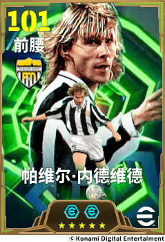 2002-03赛季,内德维德迎来职业生涯的巅峰时刻!这位金发飞扬的捷克铁人,以14球14助的全面数据,成为斑马军团卫冕联赛冠军的绝对核心。欧洲赛场上他同样亮眼,半决赛对阵银河战舰,他一记石破天惊的凌空抽射,将球队送进决赛。整个赛季,他以满场奔袭纵横攻防两端,以重炮远射屡建奇功,最终荣膺金球,用钢铁意志铸就了属于自己的传奇篇章!