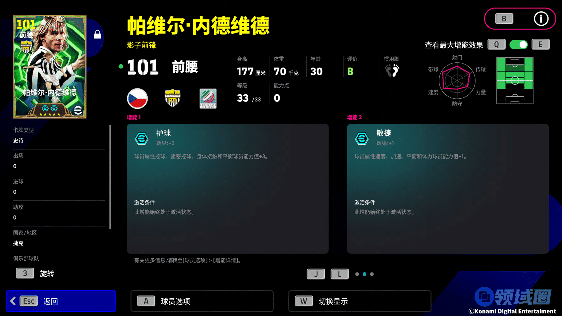 内德维德增能属性为【护球 +3】,搭配上【无定型传球】的特殊技巧,内德维德的出色的盘控能力和身体平衡让他在面对层层围堵,即使姿态不佳,依然能送出高质量的出球!