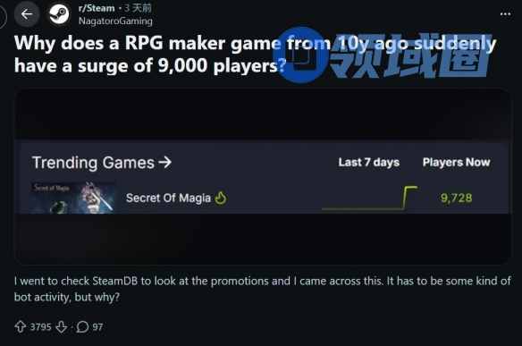 若某款游戏突然爆红,照理说社群应该会出现讨论或相关内容,但实际搜寻过去几天完全没有动静,死寂的 Steam 讨论区最新一篇文章相隔前篇已经超过半年,玩家疑问“为什么玩家数突然暴增?”大家都摸不着头绪。
