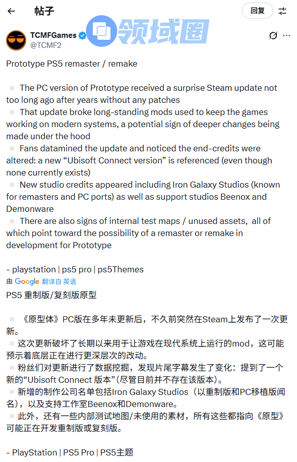 近日,海外博主@TCMF2在社交平台X上对《虐杀原形》重制版传闻进行了汇总,一起来看看吧!