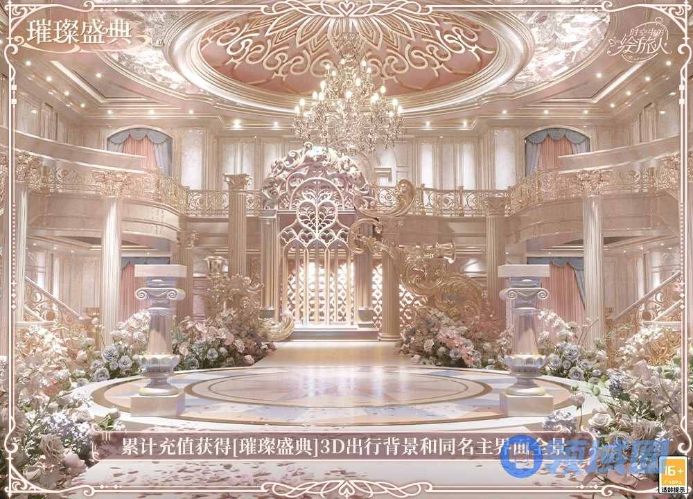在[圣塞西尔公主节II]中,可获取通用3D场景[璀璨盛典]。作为[出行场景]使用视为典藏场景,具备陀螺仪功能和专属入场,其他功能与常规场景相同。作为[主界面全景]使用可进行更多视角旋转和搭配。