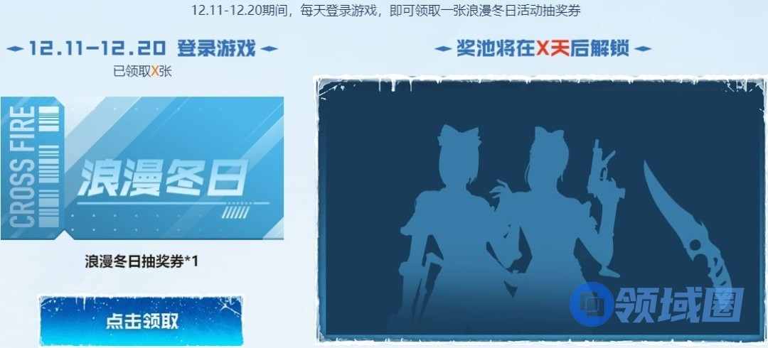 11日至20日登录,每日可领取1张浪漫冬日活动抽奖券。