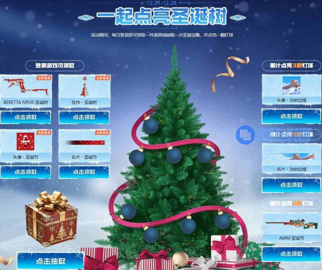 12月21日至28日,“一起点亮圣诞树”活动开启,每日登录游戏即可领取一件全新首发圣诞树系列道具,或抽取圣诞宝箱中的AK-103 饼干人等道具,每次登录都会点亮灯球,累计8颗还能将AWM 圣诞节直接带走!