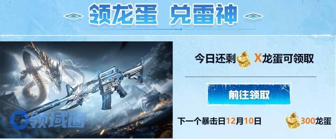 12月10日还是神龙秘宝龙蛋暴击日,CFer记得来活动页面领取300龙蛋。