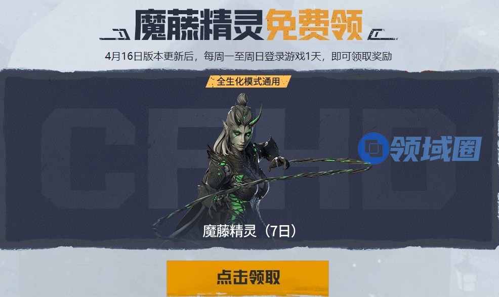 版本更新后,每周一至周日登录游戏1天还能领取魔藤精灵(7日),不要错过。