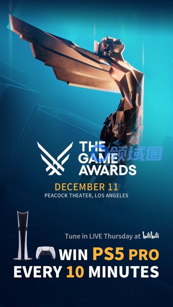 近日,TGA官方在社交媒体上发文预热,玩家可以通过B站观看TGA 2025奖典礼直播,并有机会赢取PS5 Pro,每10分钟就会送出一台。