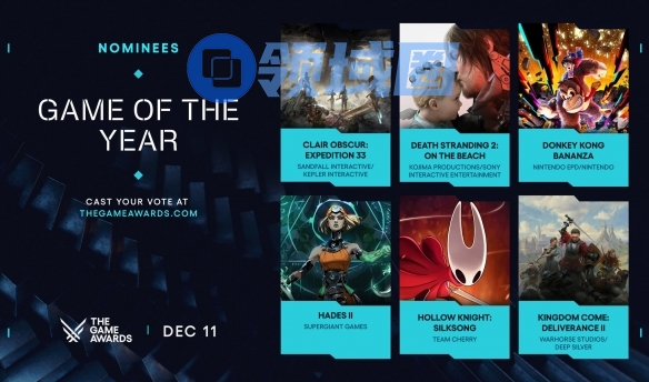此外,《光与影:33号远征队》、《死亡搁浅2:冥滩之上》、《咚奇刚:蕉力全开》、《哈迪斯2》、《空洞骑士:丝之歌》、《天国:拯救2》这六款游戏也将争夺年度最佳游戏,玩家们可千万不要错过哦。