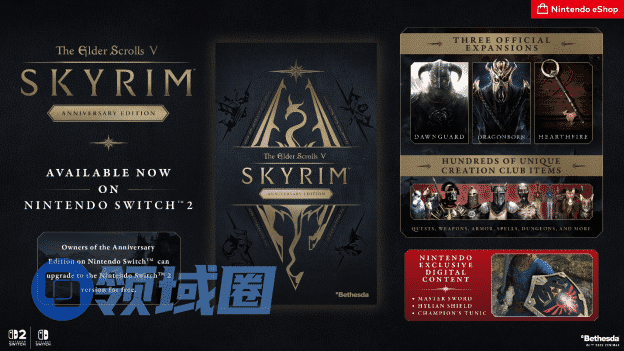 玩家可通过多种方式购买Switch 2上的《The Elder Scrolls V: Skyrim》周年版: