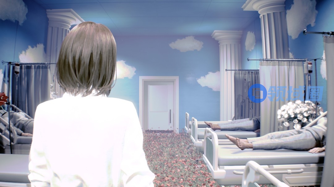 从宣传片来看,有护士登场,建筑内部是白色且无机质的空间,还有看似停尸间的场景,因此可以推测医院将是游戏的主要舞台之一。不过,出现的护士本身就带着诡异感。另外,还有头部长成花的人(?)、满身是血的少女等角色登场,毫无疑问整个空间都弥漫着难以理解的怪异氛围。