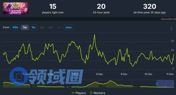 然而实际数据却远不及预期,SteamDB 显示本作在 Steam 的最高同时上线仅 320 人,还是靠免费游玩週末才勉强达成,活动结束后玩家数迅速掉到两位数,本文截稿时甚至只有 15 人。