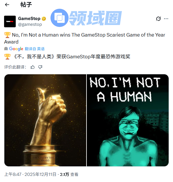 年度最恐怖游戏奖:《寻找伪人》