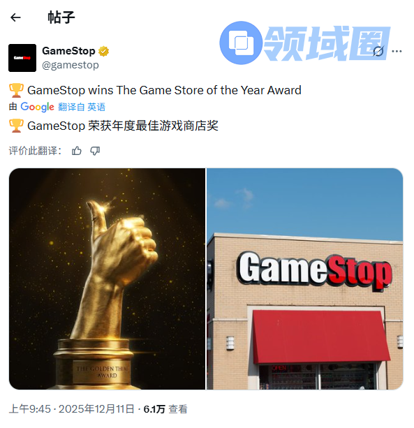年度最佳游戏商店奖:GameStop
