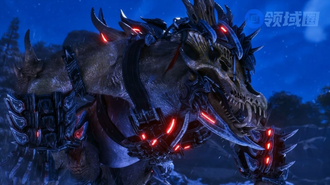 坏死纪巨兽霜獠魌头部骨冰冠冕随属性变化,能分泌低温黏液构建冰系攻防体系,扩展通行证持有者可优先驯养,其野生等级上限达100级,跨地图驯养更灵活。