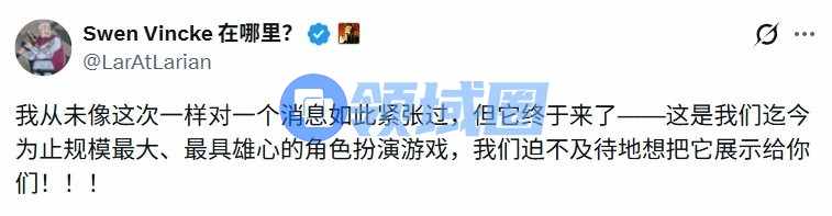 尽管除预告片外,工作室尚未透露该项目的具体细节,但游戏总监Swen Vincke放出豪言状语表示这款《神界》新作将成为拉瑞安有史以来规模最大、最具野心的游戏。