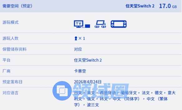 《虚实万象》标准版售价448港币,豪华版定价518港币,豪华升级包售价108港币。商店页面显示,本作在Switch2上的容量为17GB。与其他平台相同,Switch2版本将于2026年4月24日正式发售。