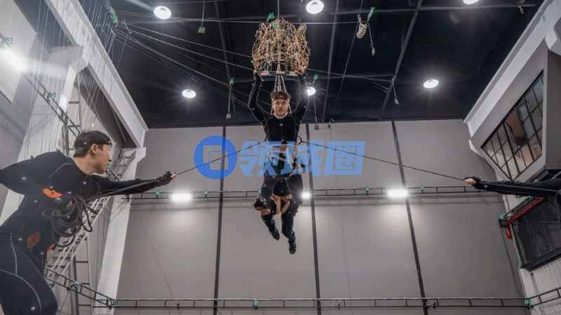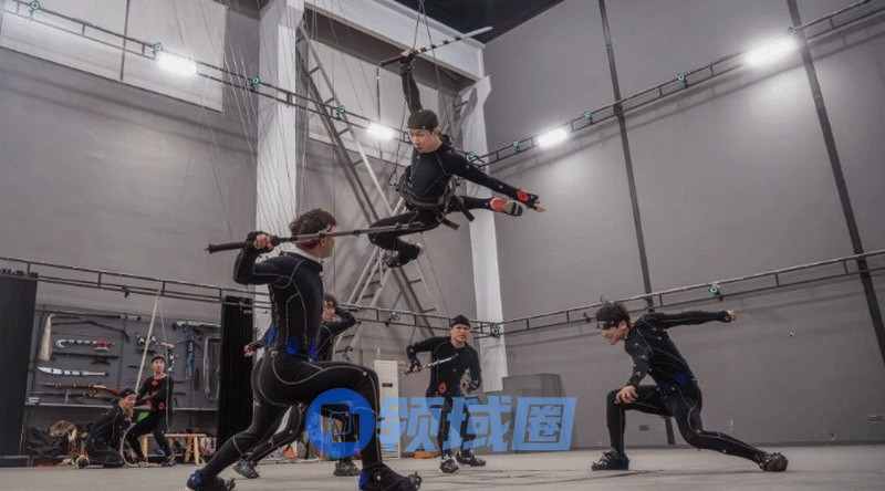 灵游坊位于上海的动作捕获工作室空间开阔并拥有挑高天花,便于吊威亚的演员完成腾跃、翻腾与飞踢等超常规动作。按照动捕工作室惯例,场地多以灰白色为主,以便追踪黑色动捕服上密布的白色标记点。四周架设的摄像机阵列精准追踪着被捕获的动作,并在现场屏幕上实时呈现演员的白色骨骼动态模型。