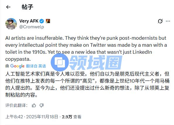 与此同时,网友们还翻出了拉瑞安发行总监迈克尔·道斯的旧日言论,使事件进一步发酵。过去,他曾多次以相当激烈的措辞批评AI创作,称其为“没有灵魂、毫无意义的噪音”,甚至是“对人类的拙劣讽刺”。评论者指出,他此前关于“AI泡沫”的立场,与如今公司被证实正在使用这些工具进行创意生成的现实之间,存在明显矛盾。