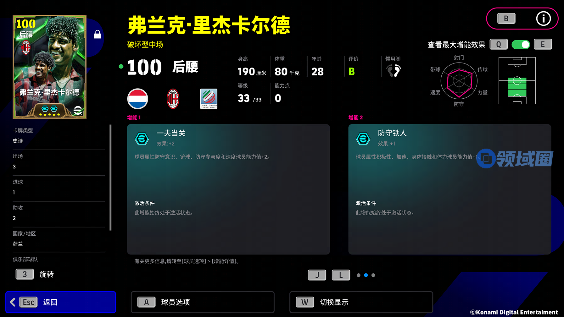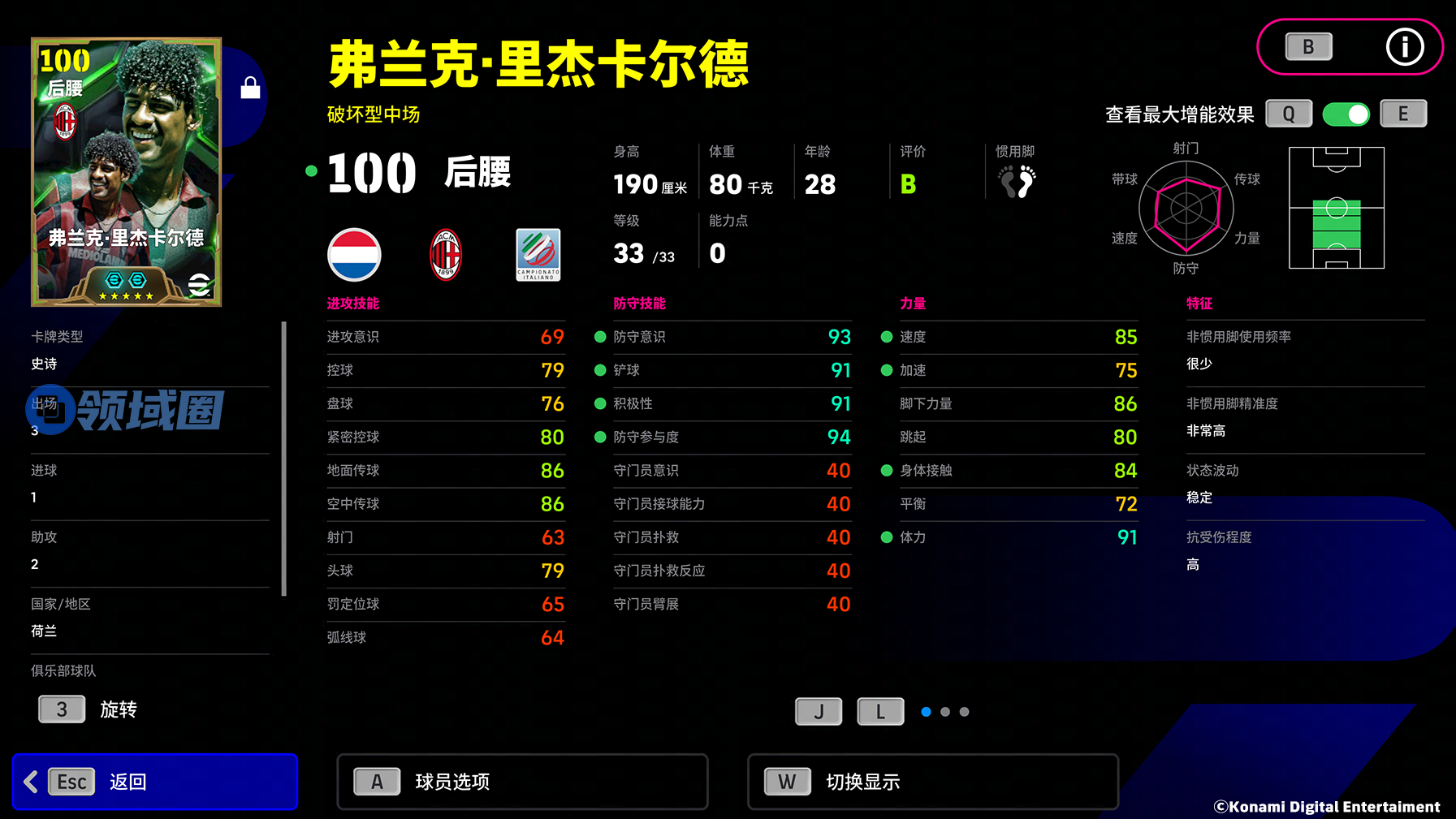 他是拥有“千古第一腰”美誉的传奇中场,更是红黑军团的中场脊梁!190公分的钢铁之躯下蕴藏着猎豹般的灵动,防守时他如移动堡垒般精准截断攻势,反击时又似精密发牌机一剑封喉!这位荷兰大师用顶级的比赛阅读能力,将力量、技术与智慧武装成他统治中场的最强力量!