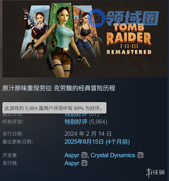 借着TGA上公布新作与重制版的热度,原价108元的《古墓丽影1-3 复刻版》合集在Steam开启了仅需32.4元的3折大促。这款包含了劳拉·克劳馥最具标志性早期冒险的高清复刻作品,目前好评率高达89%。对于想要在2026年玩到那个虚幻5引擎打造的重制版之前补课的玩家来说,用不到一杯星巴克的价格带走三款神作,这波简直是做慈善。