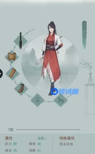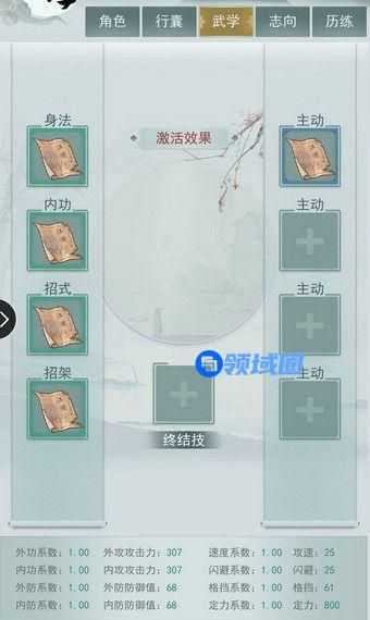 附上属性图武器带无锋(无锋是参加一测送的,没有的人只能用新手剑了),伤害比梓落高不少(ps:前期没注意不小心强化错了浪费好多铜币)武功肯定是要把一套拿全,加上第一次抽奖送的主动(主动技能是四级后去棋局抽的)。