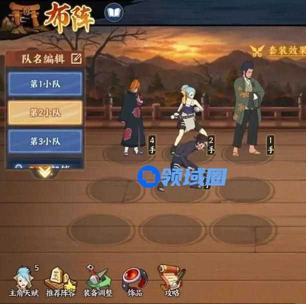 站位思路:蝎与畜生道前排双抗伤害,让后排风主和小南有足够的输出空间。风主站3号位,被动和普攻分身会帮助前排的畜生道分担一些伤害。