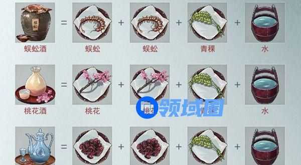 例如可以先用一份桃花加一份水得到劣质的桃花酒,或者两份桃花加1份水得到良品或者优品,接着来藏酒。
