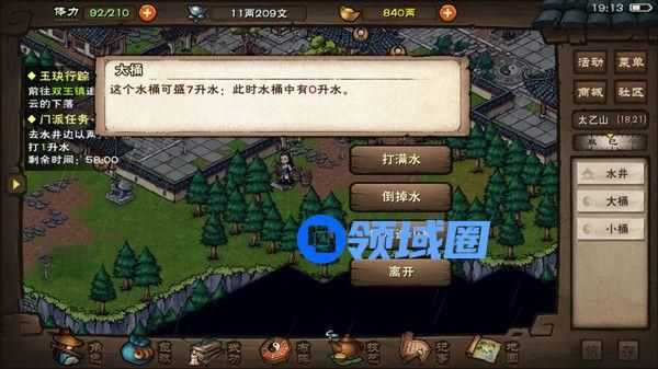 烟雨江湖玩家在太乙门派遇到打水任务难题都会比较抓狂,这个任务具体比较考验玩家的逻辑和智力,对于部分比较焦躁不想动脑筋的玩家来说确实比较难,其实也不用想具体的解决办法,本篇领域圈小编为大家介绍这个打水任务的具体流程。