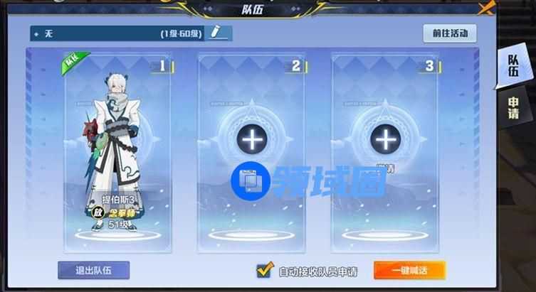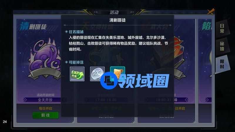 虽然活动副本的难度不算高,但是副本中的敌人比较多,而且等级与自身相同血量较高,普通装备可能需要消耗较长时间才能通关,因此可以与等级相近的玩家进行组队(也可以让装备好的朋友带一下),在组队界面的“前往活动”选项中选择清剿劫匪。可以大大提升效率。