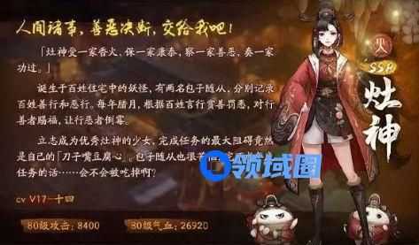 五阶灶神无法会心,提升1倍的技能倍率,出阵结束后5秒内,能够无视当前妖气值额外释放一次妖灵技能,技能结束后清除所有妖气值。第一次出阵为火系,且非会心伤害提升30%,第二次出阵为土系,且无视防御100%。