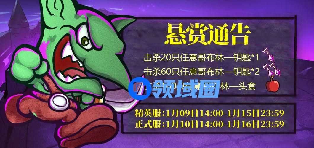 而击杀哥布林也会获得相对应的奖励,击杀20只获得一把钥匙,60只获得两把钥匙,160只获得哥布林头套。