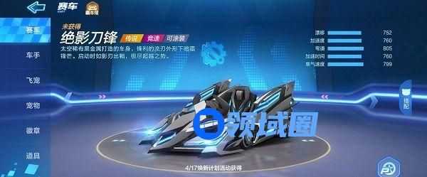 绝影刀锋的属性值为:漂移752、加速度760、弯道805、加速时间760、集气速度799,整体分布比较均衡。