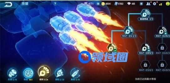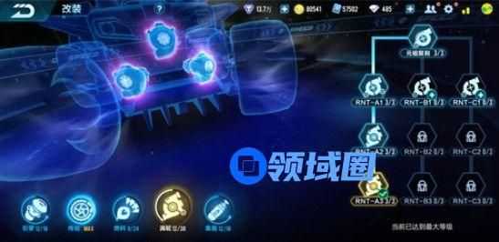 最佳改装分支应该就是左左左左了,也就是引擎、燃料、涡轮、集氮都使用最左边的分支,这样改装时,虽然无法达到最高速度,但却全面提升了雷诺的动力属性和氮气小喷时长,在实战中更加强大。