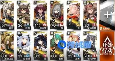两个先锋,我带的依旧是德克萨斯和推王。然后两个奶妈,我带的是赫默和白面鸮。两个近卫,银灰和煌。三个 盾,我带的是星熊、年、古米,一个是用来备用的。一个工具人,带的是红。两个高台输出,带的是能天使和安 洁莉娜(干什么!我们安哥超强的!)