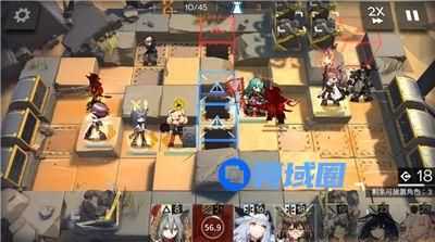 然后左侧高台放了能天使向右打,如果你有法师也可以放,只要是高台输出就行。(也可右边先上近卫)