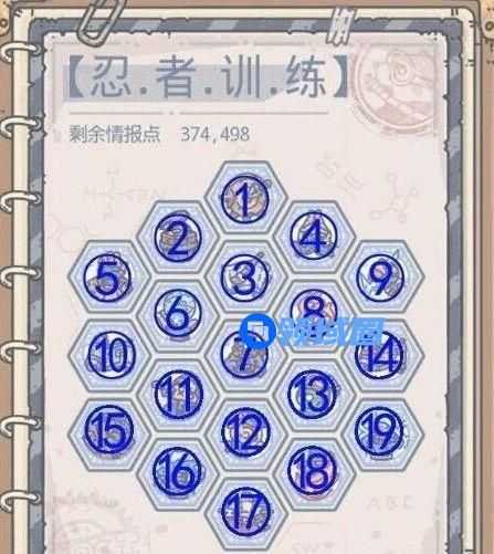 1-3-4-7-2-5-12-1-3-8-10-15-17-11-13-14开完全部图可以优先把奖励格提升了,然后在开始点忍法,点完就去忍者训练那边把修炼速度加起来(忍法的训练是扶桑中最耗时间的一项)。