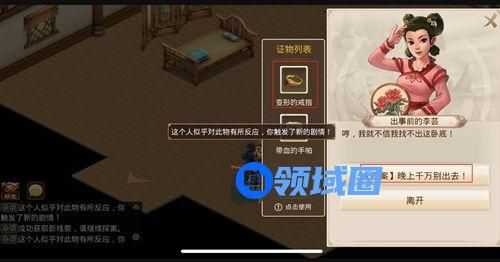线索4、渔村下路,有个屋子(门口有闪动箭头),进入屋子,与“出事前的李芸”对话。利用变形的戒指与李芸对话,劝其晚上不要出去
