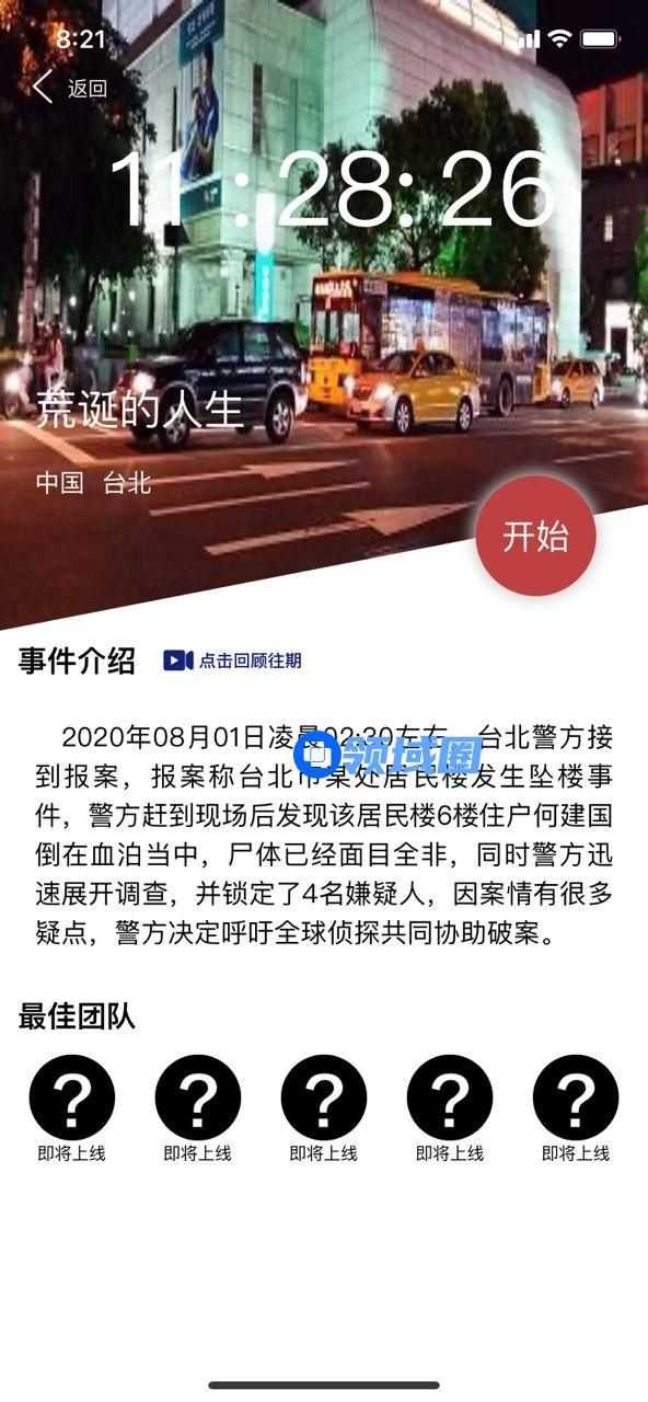2020年08月01日凌晨02:30左右,台北公安局接到报案,报案称台北市某处居民楼发生坠楼事件,警方赶到现场 后发现该居民楼6楼住户何建国倒在血泊当中,尸体已经面目全非,同时警方迅速展开调查,并锁定了4名嫌疑人,因 案情有很多疑点,警方决定呼吁全球侦探共同协助破案。