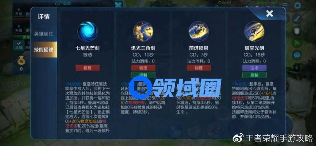 追加技:夏洛特会向指定方向快速释放迅光三角剑,同时,迅光三角剑每命中一名敌方英雄,都可以回复5%已损生命值,命中非英雄单位,效果衰减为40%。