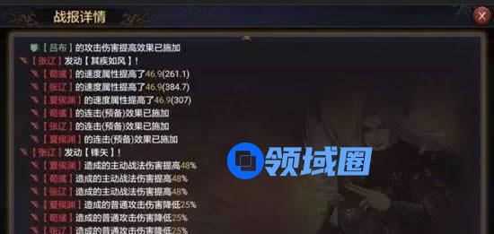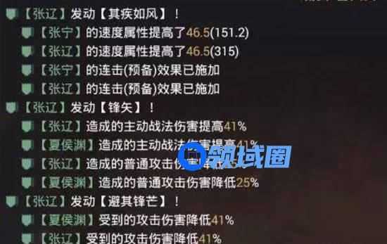 作为辅助的张辽携带的技能是锋矢和战必,战必自不用说,锋矢可是一个明星技能,以4星战法的身份效果直追5星,在张辽381的恐怖速度支持下, 锋矢的加成达到了48%,而与大赏神兵有所不同的是它是全程加持,如果不是减普攻的Debuff甚至要比各类五星战法优秀不少,而这场战斗胜负的成因我想锋矢起码占一半。