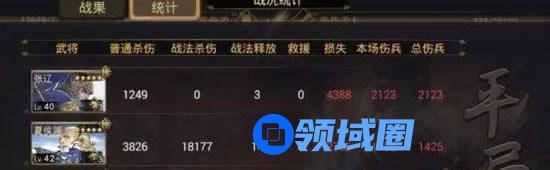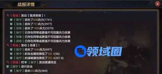 分析完二者的属性和战法我们再来看一份具体的战报,图中为一次群弓队与魏骑队的对决。双方的等级略有相差,但是群弓方的吕布1红星,张角5红星,加上弓骑克制问题,弥补了部分属性差。双方的战损比约为1.6比1,魏骑方胜并且全灭对手,算是能证明一些事。有人会质疑是不是战法碾压的关系,那么 在此送上详细的战报分析。
