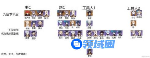 第9层第一间其实很简单,只要别靠近史莱姆就行,尽量走位拉着输出,不然....有你爽的,可能直接暴毙...第二间上半最好有聚怪角色,方便快速打怪,最后召唤蚊子的技能比较恶心,有个三角阵还有个蓄力落雷,三角阵不要碰到边缘,落雷可以离远也可以优先击破,这时候奶就显的很重要了.下半层最好在它们爆发前干掉,但会有些困难,小心风属性愚人众,被吸住有极大几率暴毙.第三间上半,注意捡土龙的结晶加盾,优先击杀土龙,和丘王一定要拉开距离,不然...不死也重伤,下半间就简单的很了,比如,有皇女的话,节省体力躲它俩的跳和导弹就行,其余时间就是射它俩要害,等它们蔫了,再爆发就好.