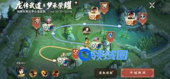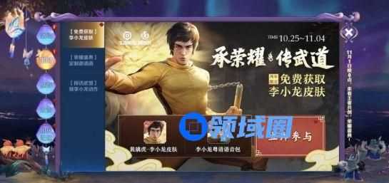 挑战关卡就是李小龙与野怪PK,所以玩家可通过获取经验提升技能等级增加生命值和伤害,如此就能快速通关,其中李小龙皮肤将在10月28号开放领取,也就是通过第四关后领取,而第五关挑战成功了便可以领取李小龙粤语专属语音包。小编觉得获取方式还是很简单的,即便工作日没有空闲时间的玩家,也可以在下周日获取海量经验升级获得。